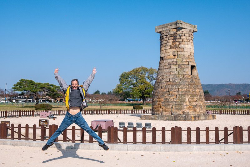 Entre los sitios que ver en Gyeongju tampoco podíamos olvidarnos del observatorio de Cheomseongdae, convertido en símbolo de la ciudad. Lo vimos en dibujos, peluches y hasta en dulces y snacks antes de verlo en “formato piedra”. Y tenemos que decir que nos lo esperábamos más grande… pero, oye, sigue siendo el observatorio astronómico más antiguo conservado en Asia: es del siglo VII.