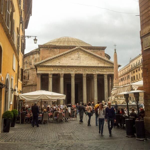 El Panteón de Agripa es espectacular por dentro y por fuera, la fachada clásica con sus columnas, la puerta de bronce que te invita a entrar. La plaza con su fuente.