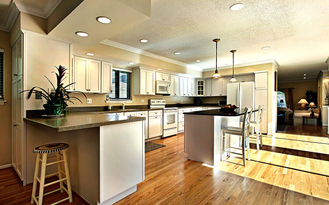 Materiales Duraderos: Opta por materiales que sean resistentes y fáciles de limpiar. Las encimeras de cuarzo, los suelos de cerámica y los gabinetes de madera tratada son buenas opciones.