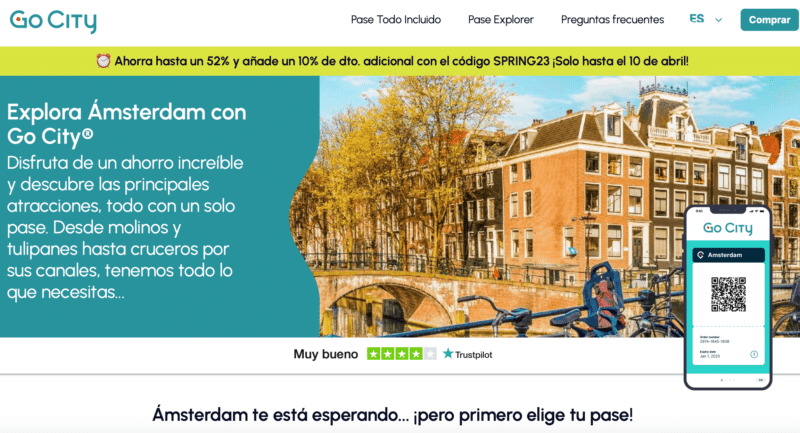 El pase turístico Go City Amsterdam Pass te permite ahorrar hasta un 50% en las mejores atracciones de Ámsterdam. Con el pase, podrás elegir entre una amplia variedad de opciones: desde visitas a museos hasta tours por la ciudad, entre otras.