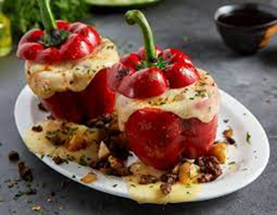 un pimiento rocoto relleno con carne, cebolla, ajo, especias y queso. Francesco