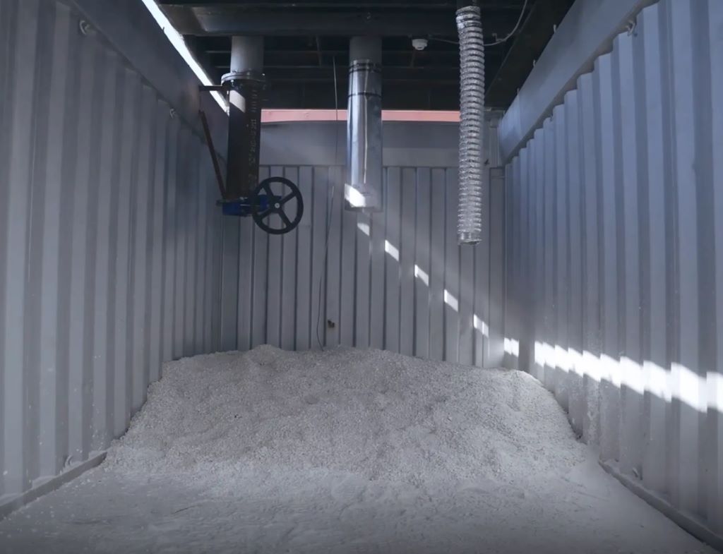El gas de escape es filtrado a través de un montón de piedras de óxido de calcio, conocidas como cal viva, un material barato y abundante utilizado en construcción, agricultura y otras áreas a nivel mundial. El dióxido de carbono reacciona fácilmente con la cal viva a temperatura ambiente, creando carbonato de calcio o piedra caliza, lo que permite una captura segura del CO2.