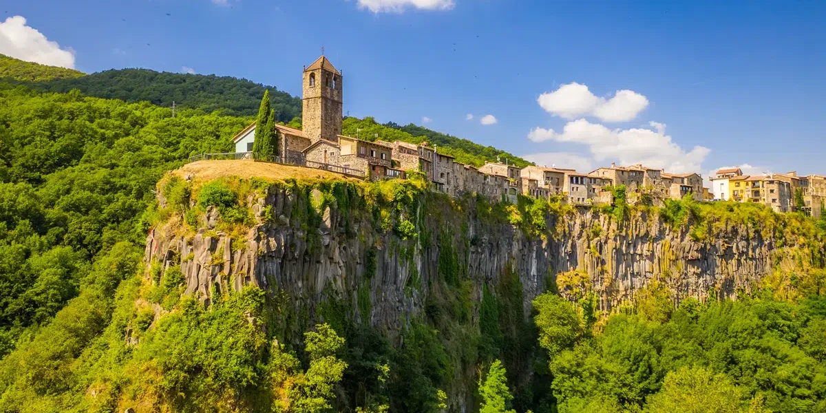 Sus casas parecen suspendidas en el aire y sus estrechas callejuelas desembocan en la antigua iglesia de Sant Salvador, en el extremo del risco, donde se halla un mirador con vistas que quitan el hipo. Este municipio es una de las puertas de entrada al Parque Natural de la Zona Volcánica de la Garrotxa. Así que, podrás combinar localidades con encanto con rutas de senderismo, ¿te unes al plan?