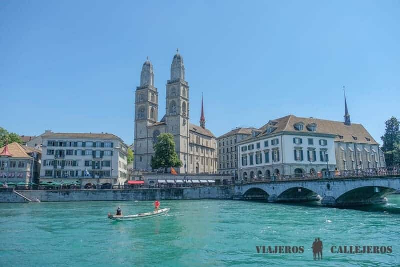 La iglesia Grossmünster, construida junto al río Limmat, entre los años 1100 y 1220, es uno de los edificios más emblemáticos que ver en Zúrich.