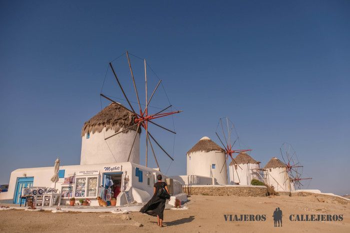 ¿Cuánto tiempo dedicar a Mykonos? Lo ideal es estar unos 2-3 días para hacer una ruta por la isla que acostumbra a empezar en Chora, la capital de Mykonos. Aquí te recomendamos perderte por sus laberínticas y estrechas calles, fotografiar miles de casitas blancas con ventanas azules, enamorarte en la Pequeña Venecia, encontrar la iglesia de Panagia Paraportiani, recorrer el antiguo puerto y subir hasta la parte alta de la ciudad para ver los Molinos de Viento al atardecer.