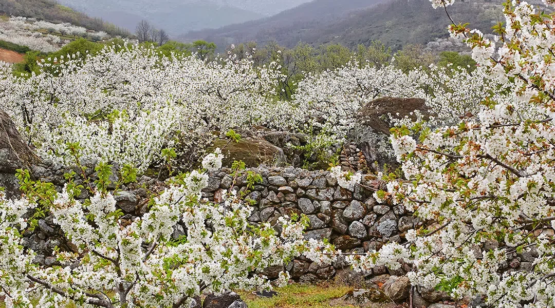 A estas alturas todo el mundo ha oído hablar de la floración del Valle del Jerte, en el norte de Cáceres. Sin duda, es uno de los destinos más emblemáticos de España para ver los cerezos en flor. Cada primavera más de un millón y medio de cerezos hacen su magia transformando el paisaje en un auténtico espectáculo visual. Eso sí, hay que ajustar las fechas para visitarlo en su mayor esplendor porque se trata de un fenómeno natural breve que dura entre 7 y 10 días.