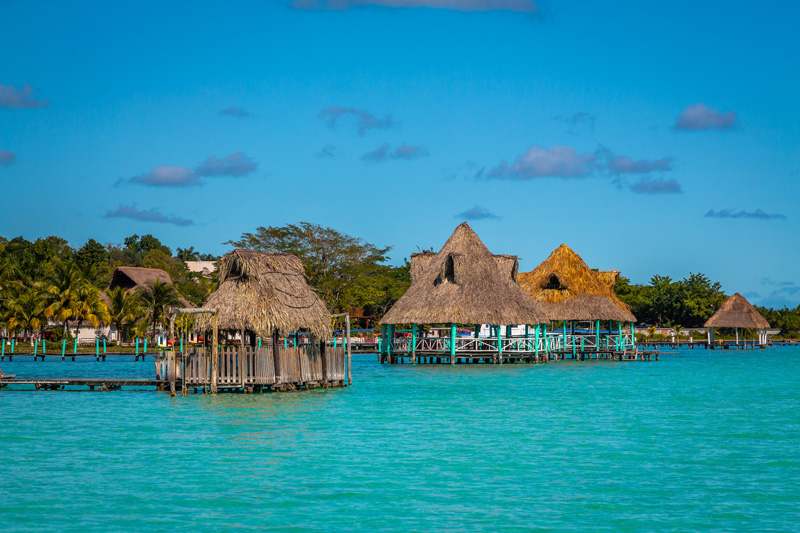 La Laguna de Bacalar es una laguna de agua dulce estrecha y larga, pues mide unos 55 kilómetros de largo y apenas 2,5 en su punto más ancho. Es conocida como la Laguna de los Siete Colores por las diferentes tonalidades de azul que se pueden apreciar gracias a las profundidades que tiene. En ella, se pueden encontrar 5 cenotes y el sistema de estromatolitos de agua dulce más extenso del mundo, que, además, datan de entre 6.000 y 10.000 años de antigüedad.