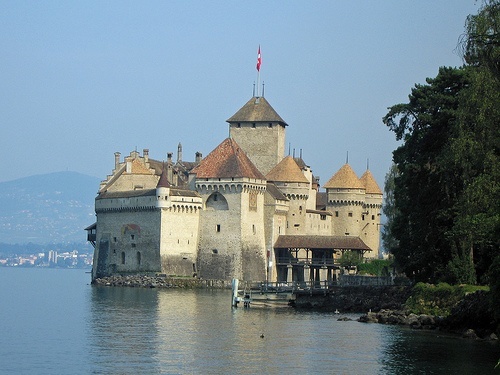 El Castillo de Chillon (foto sobre estas líneas) está situado a orillas del lago de Ginebra en la comuna suiza de Veytaux. Fue construido sobre una roca y es una de las atracciones turísticas más visitadas de todo el país. El Castillo tiene más de 1000 años de historia y ha sido fuente de inspiración para artistas y escritores. Por ejemplo, Lord Byron escribió el poema El Prinsionero de Chillon. Hoy día se puede visitar e incluso alquilar algunas de sus salas para organizar banquetes. Las visitas guiadas se deben reservar con antelación, aquí te puedes descargar la solicitud y has de enviarla por fax o e-mail.