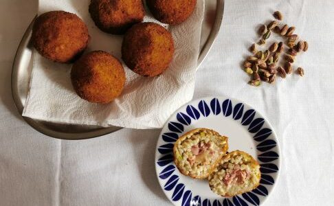 Arancinas de pistacho y mortadela