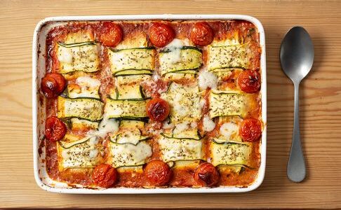 Raviolis de calabacín en salsa de tomate