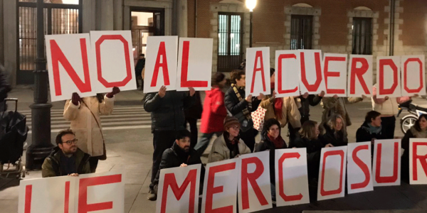 Comparte en tus redes sociales 31 enero 2023 La campaña estatal No a los Tratados de Comercio e Inversión, de la que formamos parte, hemos exigido al Gobierno que rechace el acuerdo comercial UE-Mercosur en una concentración frente al Ministerio…