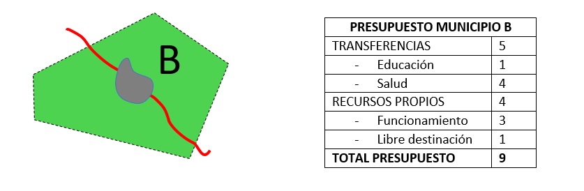 “B” es la segunda municipalidad de la región. Cuenta con un centro de salud de carácter regional con algunos servicios de atención especializada. Como “A”, tiene un presupuesto limitado, que también depende en gran medida de las transferencias del Gobierno central, que en este caso se van a cubrir necesidades de salud. Al igual que le sucede a “A”, el presupuesto de libre inversión no alcanza para lograr los mínimos estándares de provisión de bienes y servicios públicos adjudicados a las competencias locales.