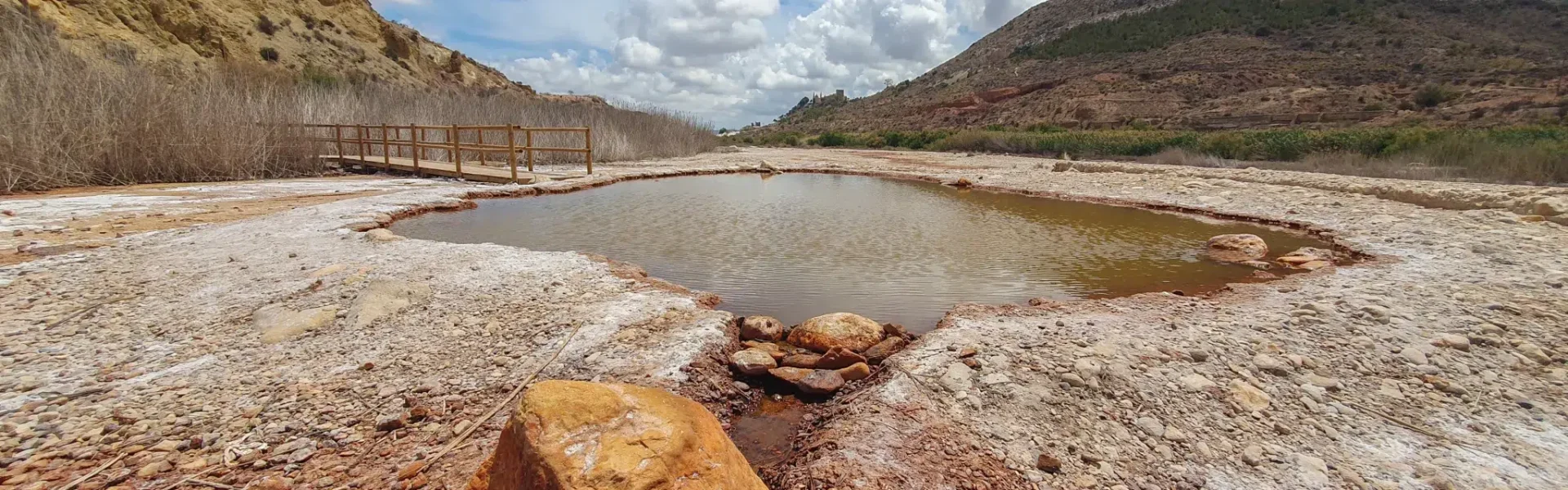 No obran milagros, pero alivian. Así podrían resumirse los Clots de la Sal, las singulares piscinas naturales conocidas también como Les Salinetes de Novelda, situadas a pocos pasos de esta localidad alicantina. Su principal característica es la alta concentración de sal, muy superior a la del mar, por lo que se les atribuyen propiedades medicinales para tratar dolencias o afecciones de la piel. Todo ello rodeado de un entorno natural único y ¡gratis!