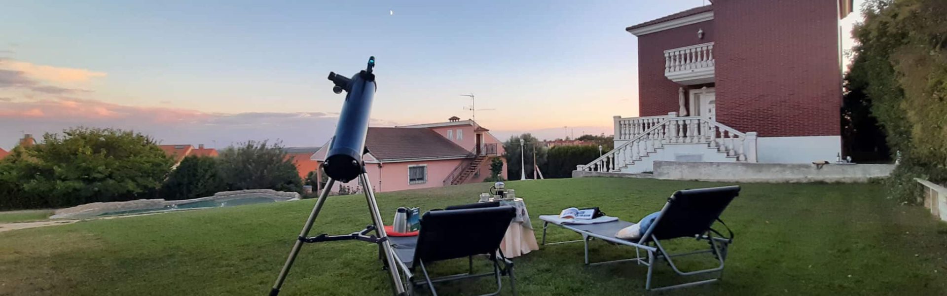 Telescopio al atardecer desde el balcón de Finca Sotomar.
