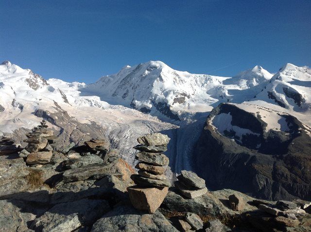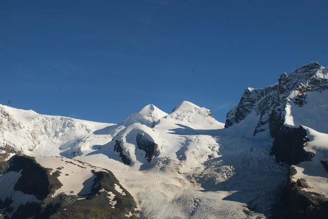En el último trayecto hasta Gornergrat las vistas vuelven a ser soberbias, con el glaciar Gorner, las montañas gemelas del Castor y Pollux, el Liskamm o el mismísimo Monterosa, todos ellos cuatro miles de cimas nevadas.