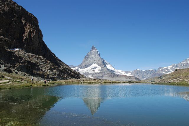 Tras unas cuantas fotos, os recomendamos que hagáis la excursión al Riffelsee, uno de los lagos más bonitos de Suiza. Si os preguntáis cómo llegar al lago Rifelsee, os diremos que está perfectamente señalizado nada más salir de la estación y el camino es sencillo. 50 minutos os separarán de este lago de postal dónde el Matterhorn regala su reflejo al Riffelsee.