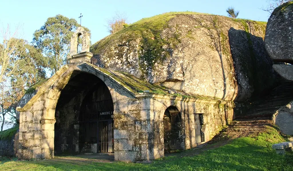 Excavada directamente en una gigantesca roca de granito, la capilla de la Asunción (o ermida da Nosa Senhora da Asunción, en gallego) llama la atención y sobrecoge a simple vista. Se alza imponente en la cima del monte Castelo, junto a la parroquia de Pesqueiras, dominando todo el concejo de Salvaterra do Miño y la comarca de O Condado con unas vistas impresionantes desde su mirador.