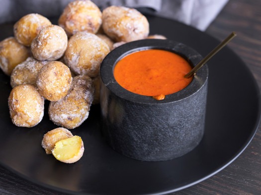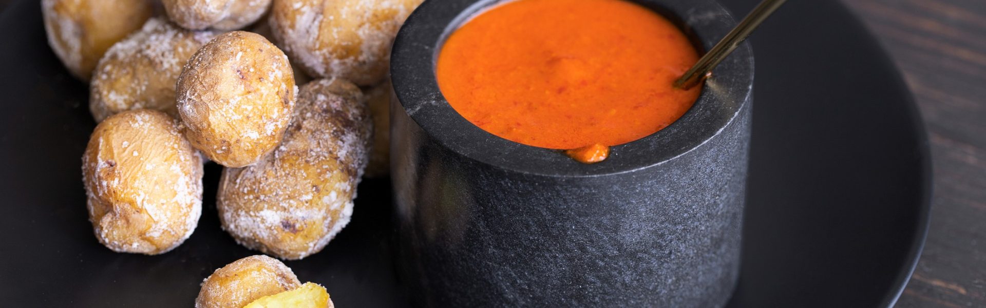 La cocina lanzaroteña está profundamente influenciada por la naturaleza de la isla, sus tierras volcánicas y su tradición agrícola. Uno de los productos más característicos de la isla es el pimiento canario, pequeño y sabroso, que se utiliza en muchas recetas, desde los tradicionales pimientos asados hasta el clásico mojo picón. Este mojo, elaborado con pimientos rojos o verdes, ajo, aceite, vinagre y comino, es esencial en la gastronomía canaria y acompaña a numerosos platos locales. Además, las papas arrugadas son otro de los imprescindibles que no puedes dejar de probar. Se cocinan en agua con sal y se sirven con el tradicional mojo picón verde o rojo, convirtiéndose en un acompañamiento ideal para carnes, pescados y mariscos.
