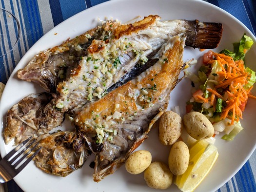 Lanzarote, rodeada por el océano Atlántico, es el lugar ideal para disfrutar de mariscos y pescados frescos. Entre las especialidades más destacadas se encuentran el “sancocho canario”, un guiso tradicional hecho con pescado salado, y la “vieja”, un pescado autóctono de la isla que se prepara a la sal o a la plancha, siendo uno de los manjares más apreciados en la cocina local. Las lapas y los calamares también son deliciosos y se sirven en numerosos bares y restaurantes locales. Los pescados frescos, como el atún, son una excelente opción, especialmente cuando se preparan a la parrilla o en forma de “ceviche”, una receta ligera y refrescante que refleja la frescura de los ingredientes.