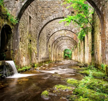 El Gorg de Santa Margarida es una de las pozas más bonitas y conocidas de Les Planes d’Hostoles, en la comarca volcánica de la Garrotxa. El lugar parece de película, rodeado de vegetación y con una cascada que cae a una piscina natural en la que podemos bañarnos. Para llegar hasta ella podemos seguir una vía verde. Es una ruta circular, de solo 4 kilómetros y por el camino podemos ver las ruinas de una antigua iglesia