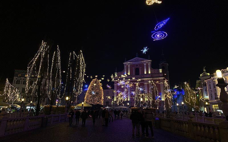 Liubliana en Navidad es una ciudad completamente diferente a lo que encontraréis en el resto de Europa en época de Pascuas. La temática de su iluminación navideña es la energía del Universo y, aunque cada año tiene una connotación diferente, los planetas, las formas geométricas, los óvulos y los espermatozoides siempre flotan en sus calles. El mercado de Navidad de Liubliana ha sido galardonado como uno de los mejores mercados navideños de Europa, así que si estáis buscando un viaje diferente en el mes de diciembre este es vuestro destino navideño. En esta guía vamos a contaros los principales lugares que ver en Liubliana en Navidad y un montón de planes navideños que podréis hacer en la ciudad desde finales de noviembre hasta principios de enero. ¿Listos para sorprenderos con la magia de la Navidad en Ljubljana?