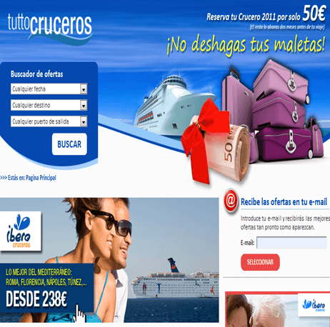 Buscador de Cruceros Tuttocruceros, el crucero que buscas , el destino que quieres,en la fecha que mejor te convenga. . Escoge entre los cruceros de 9 compañías navieras, con los mejores precios.