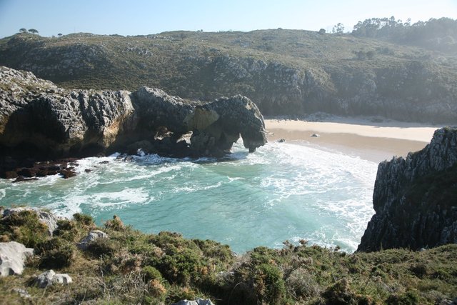 La playa de las Cuevas del Mar se encuentra en las proximidades de la localidad de Nueva, en Llanes, y recibe este nombre por las oquedades características del paraje.