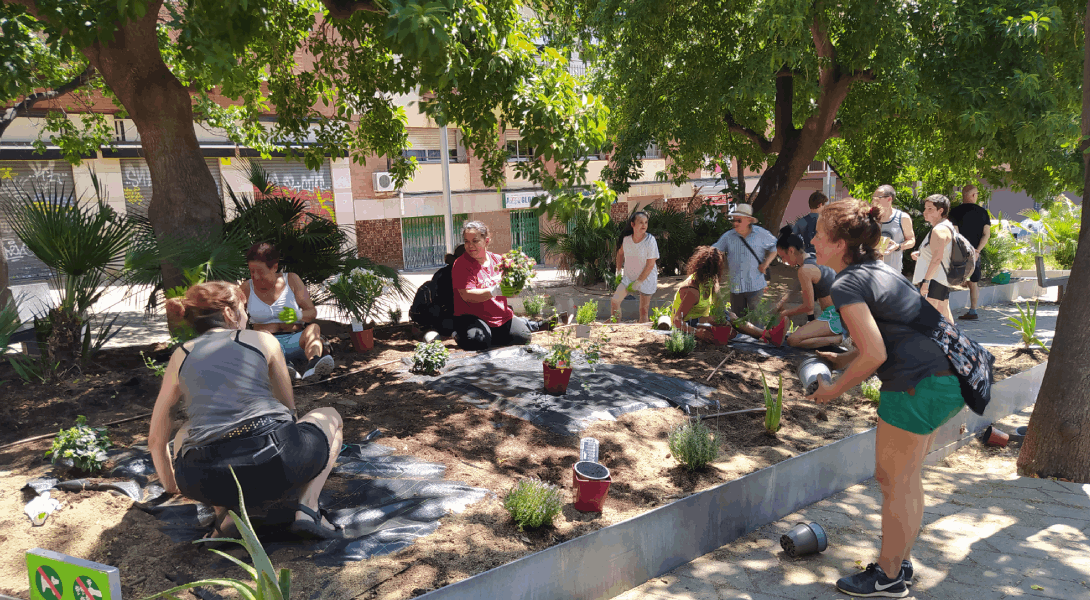 Reclamamos a las administraciones locales la generación y promoción de refugios climáticos comunitarios, impregnada de una gestión territorial participativa, a través de la creación directa en suelo no edificado y la facilitación al desarrollo de experiencias ciudadanas autogestionadas como huertos comunitarios y espacios comunitarios informales.