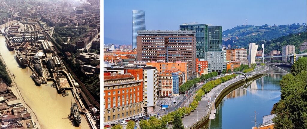 Si el comienzo de siglo XX hizo de la ría de Bilbao un polo de desarrollo económico regional, los años 80 pusieron fin a esa edad de oro con la reconversión industrial del país. La desindustrialización no solo se llevó por delante miles de empleos, sino que vació por completo un espacio estratégico para la ciudad, dejando tras de sí óxido y abandono. Sin embargo, ese no era un final apropiado para un espacio que tanto había dado a la ciudad. Gracias a la creación una sociedad pública, la ría de Bilbao se convirtió en un referente de regeneración urbana mediante estrategias de autofinanciamiento.