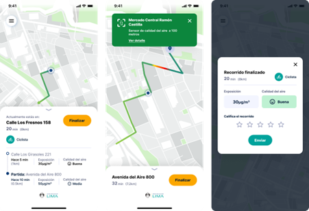 En 2022, la MML, junto a qAIRa y la PUCP, quisieron acercar aún más al ciudadano la información de calidad del aire. Por ello, con el fin de facilitar el acceso a esos datos, idearon una aplicación móvil que da al usuario recomendaciones sobre rutas de movilidad urbana de baja exposición a la contaminación del aire. Esta iniciativa, que pudo llevarse a cabo con el apoyo del BID, tiene como objetivo promover la movilidad activa y alertar a la población sobre los niveles de aire contaminado a los que se expone al realizar sus actividades al aire libre, por lo que es especialmente útil para ciclistas y peatones.