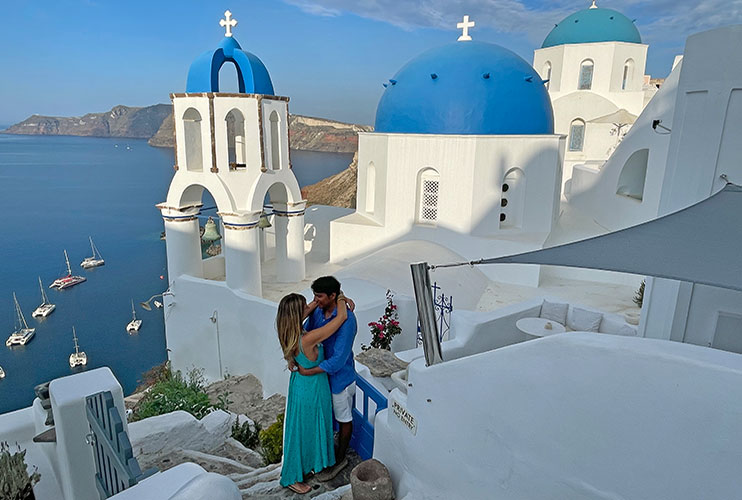 El siguiente destino de nuestra ruta por Grecia fue Santorini. También le dedicamos 4 días a esta fascinante isla, pero el primero de todos lo pasamos metidos en la piscina privada de nuestro hotel de lujo en Imerovigli con vistas a la Caldera.