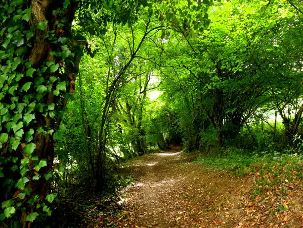 En las proximidades de Saint Girons se extiende una zona rural, agrícola y unos estupendos bosques frondosos donde el liquen sorprende creciendo alrededor de los troncos de encinas, pinos y nogales. El camino es de tierra rojiza y no implica serias dificultades para afrontarlo salvo un estado de forma física aceptable.