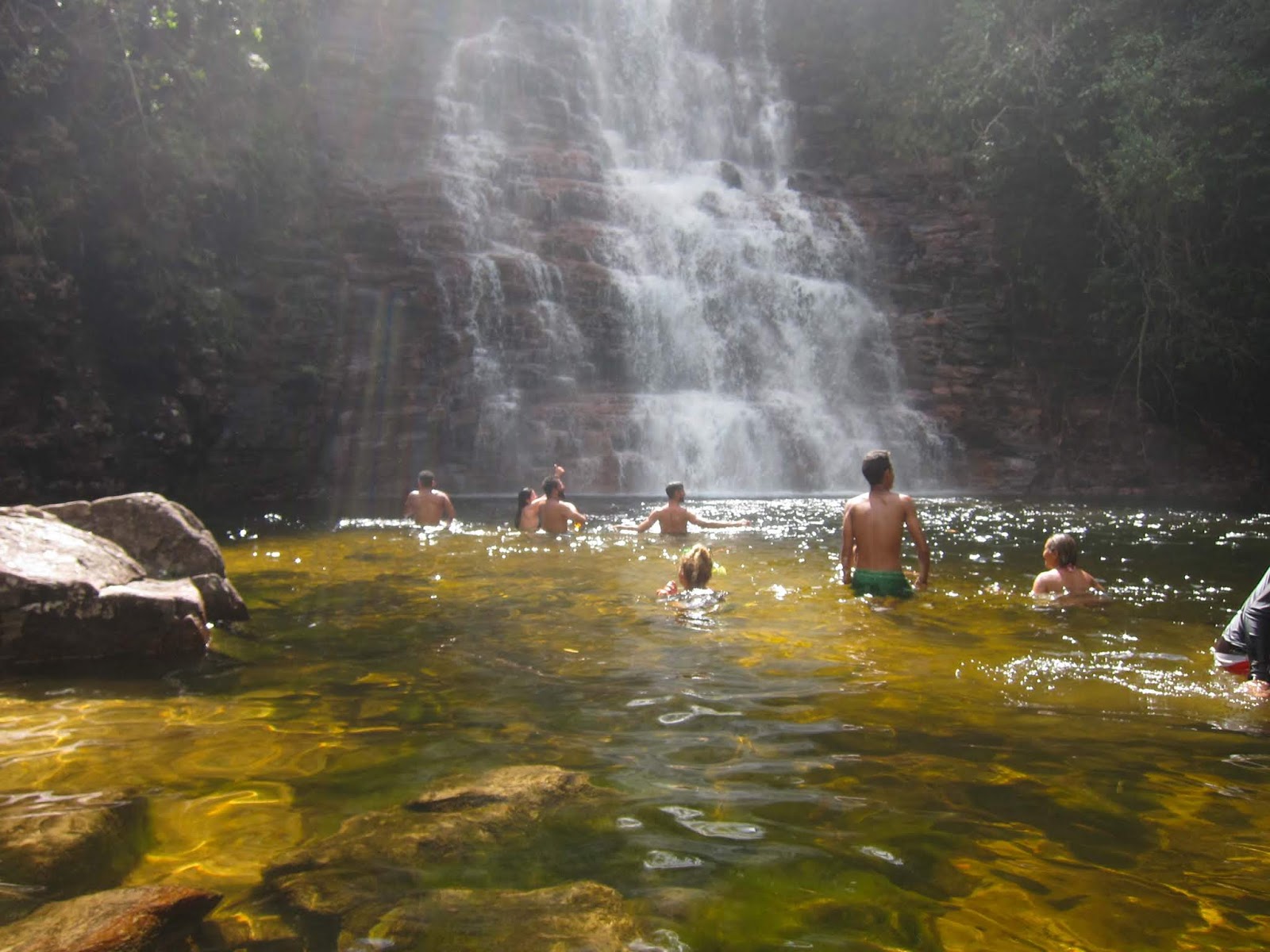 El agua era amarillo brillante, pero muy transparente a la vez, aunque al fondo se volvía más oscura. Los rayos del sol bajaban junto a la cascada y todo tenía reflejos de luz, como si se tratara de una escena celestial.