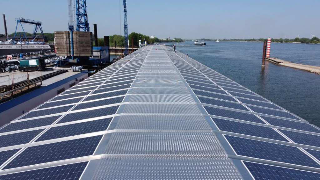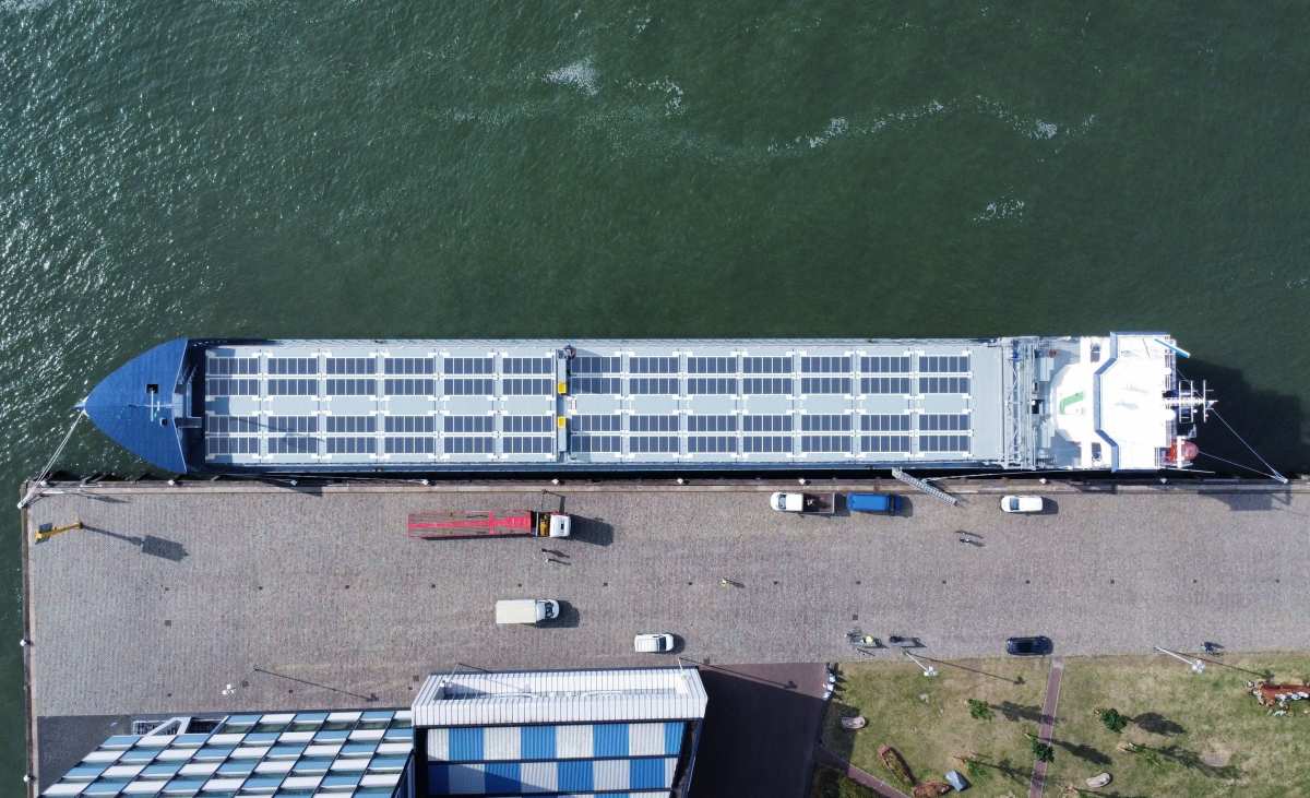 Empresas europeas lanzan el primer barco de navegación interior con un sistema solar híbrido capaz de impulsar su motor