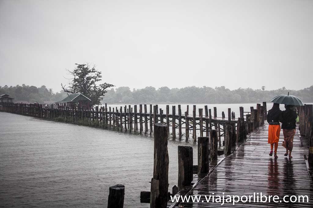 U Bein, el puente de teca más largo del mundo, es uno de los puntos turísticos más visitados de Myanmar y está situado en la ciudad de Amarapura, junto a Mandalay. La mejor hora para ir al puente de teca, la de la puesta de sol para ver los reflejos en el lago de los barqueros cruzando el lago. Otra buen momento es a primera hora de la mañana, para ver a los monjes cruzar el puente.