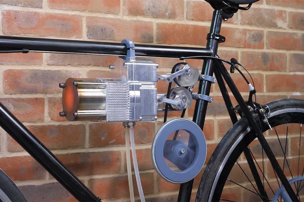 Ingeniero aficionado británico construye una bicicleta única impulsada por un motor Stirling de 200 años, funciona sin batería
