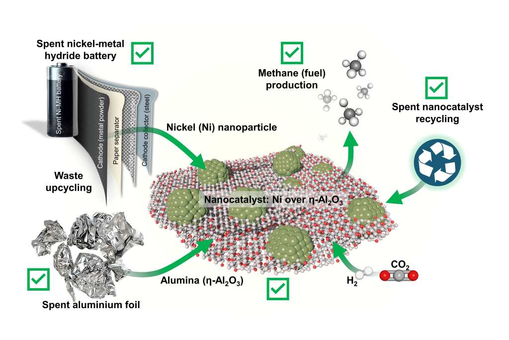 Investigadores austriacos desarrollan innovador nanocatalizador usando baterías gastadas y papel de aluminio reciclado, convierte el CO2 en metano, un combustible valioso