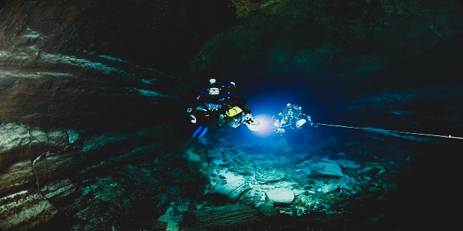 El ‘buceo libre extremo en cuevas inundadas’ (cave diving) representa una inmersión en un mundo subterráneo laberíntico y oscuro, donde la ausencia de luz, la complejidad de los pasajes y la limitación del suministro de aire exigen una preparación exhaustiva y una calma inquebrantable. La navegación en estos entornos confinados y la gestión de situaciones de emergencia requieren un entrenamiento especializado y una mentalidad resiliente.