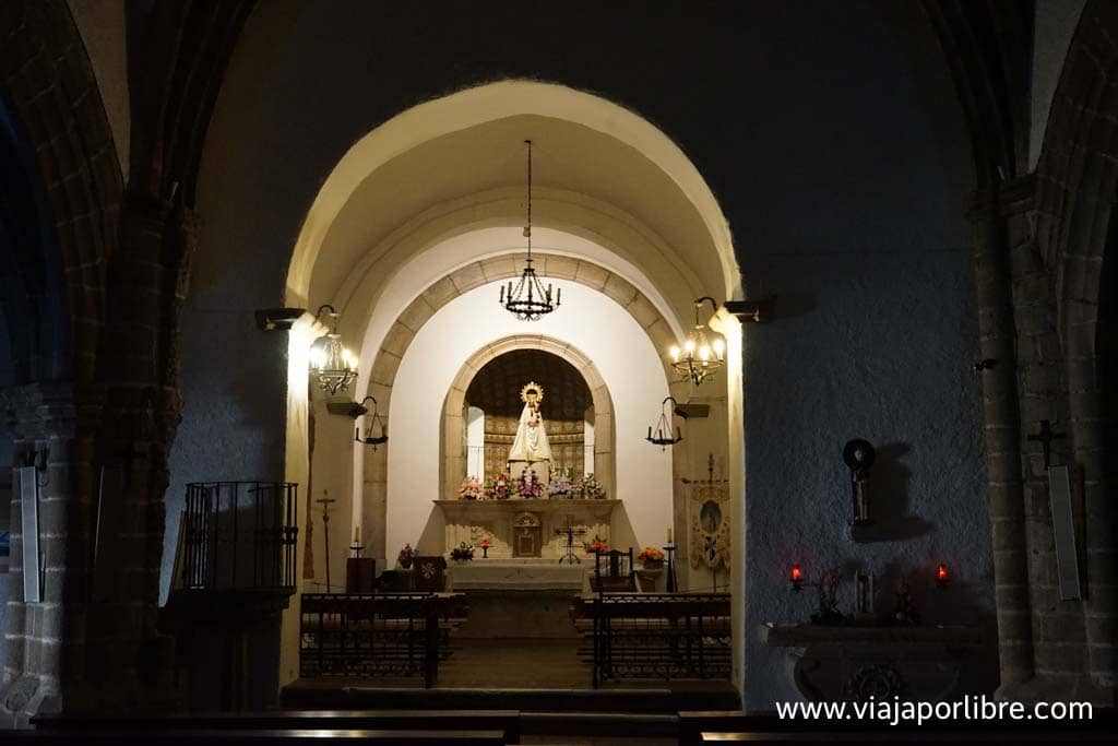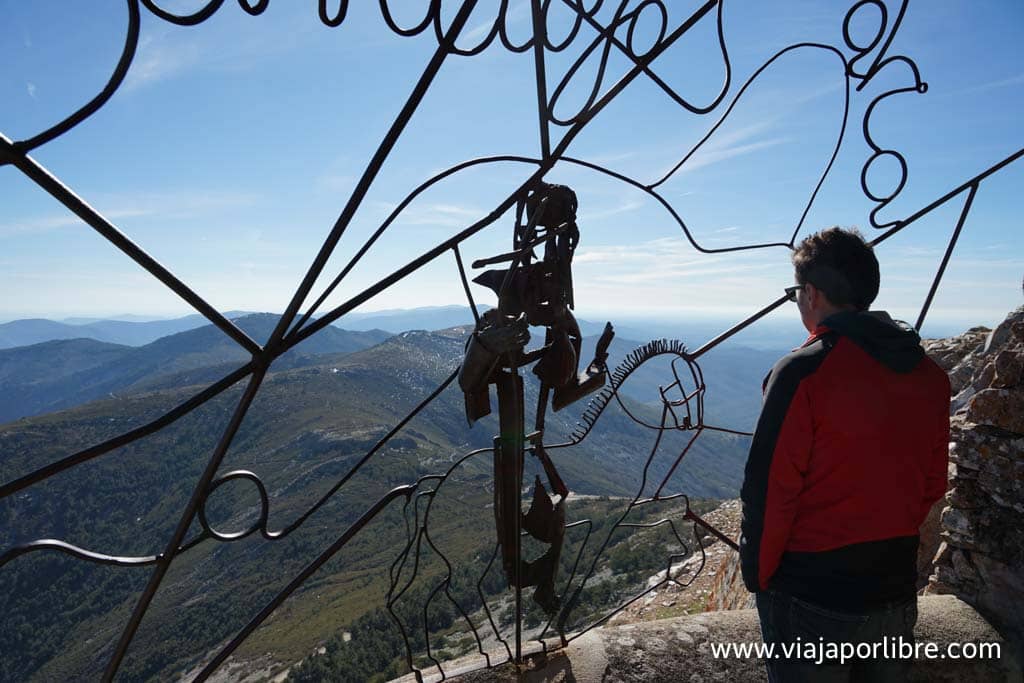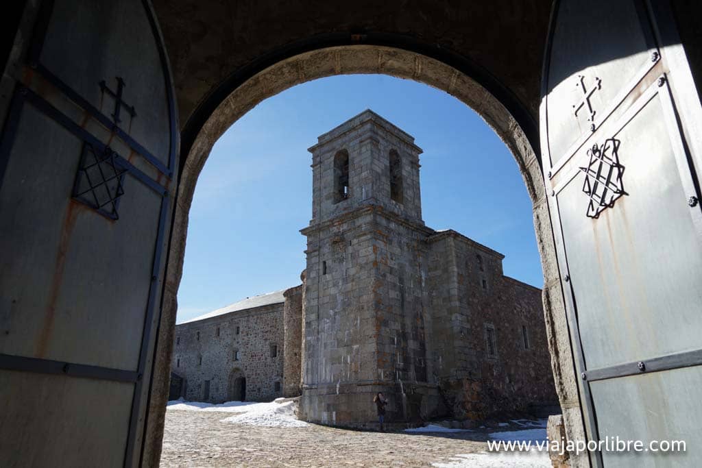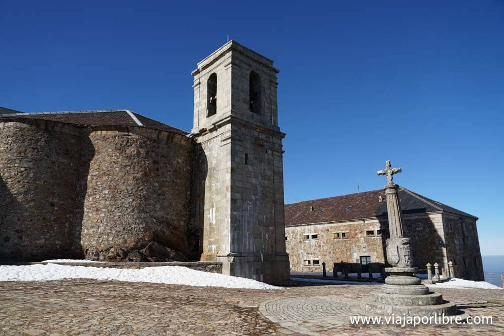 Ya en la cima, se camina unos 200m desde el parking hasta la hospedería y el santuario. El santuario de la Peña de Francia es un conjunto que comprende un pequeño convento, una iglesia gótica, una pequeña plaza y un precioso mirador hacia la Sierra de Bejar.
