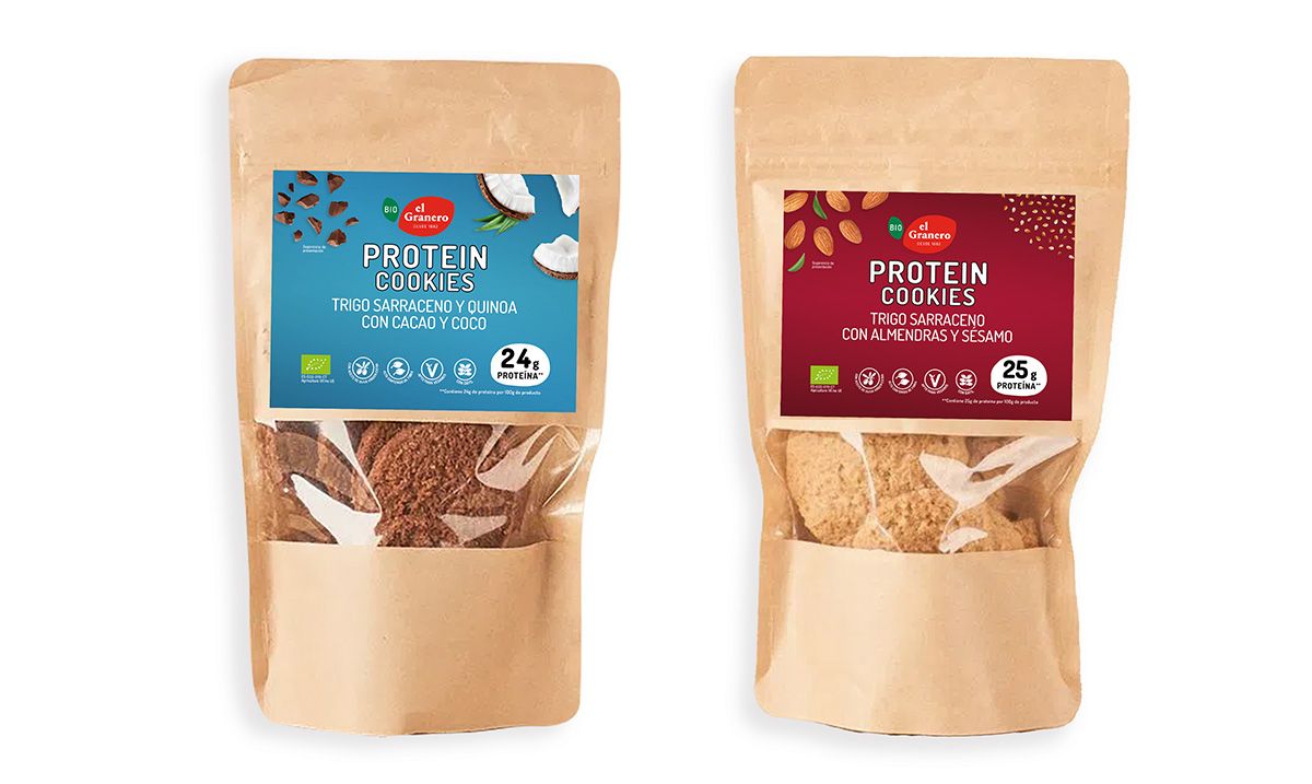 El Granero presenta dos nuevas galletas pensadas para el disfrute sin descuidar la salud. Con base de trigo sarraceno y endulzadas únicamente con dátil, estas deliciosas galletas aportan 24 gramos de proteína por cada 100 gramos de producto. Disponibles en dos sabores irresistibles: cacao y coco, y almendras y sésamo.