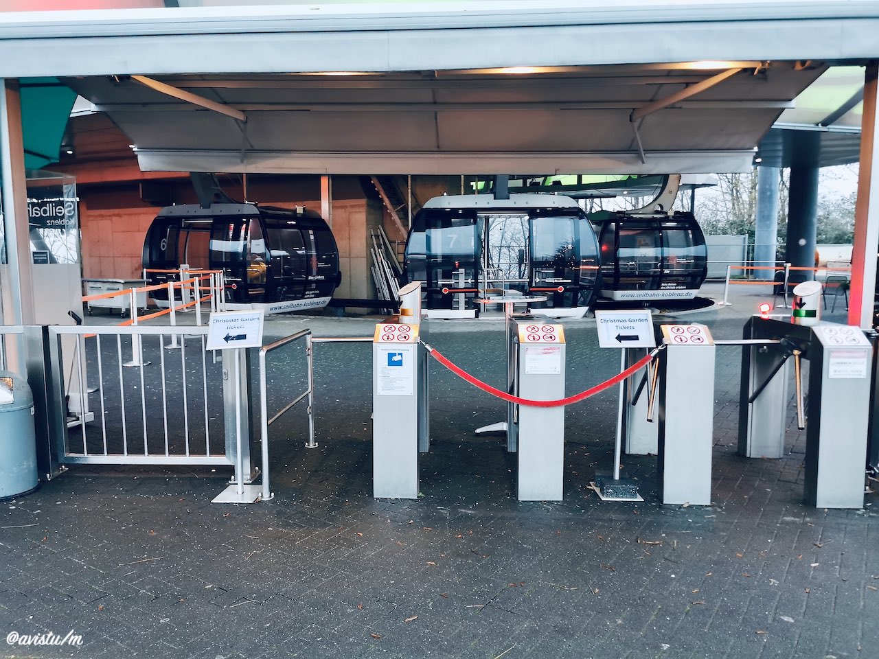 El Seilbahn Koblenz cuenta con un total de 18 cabinas, con asientos, que suben y bajan continuamente durante el periodo de operación, de modo que no pasa ni un minuto hasta que tenemos delante una a la que subirnos.