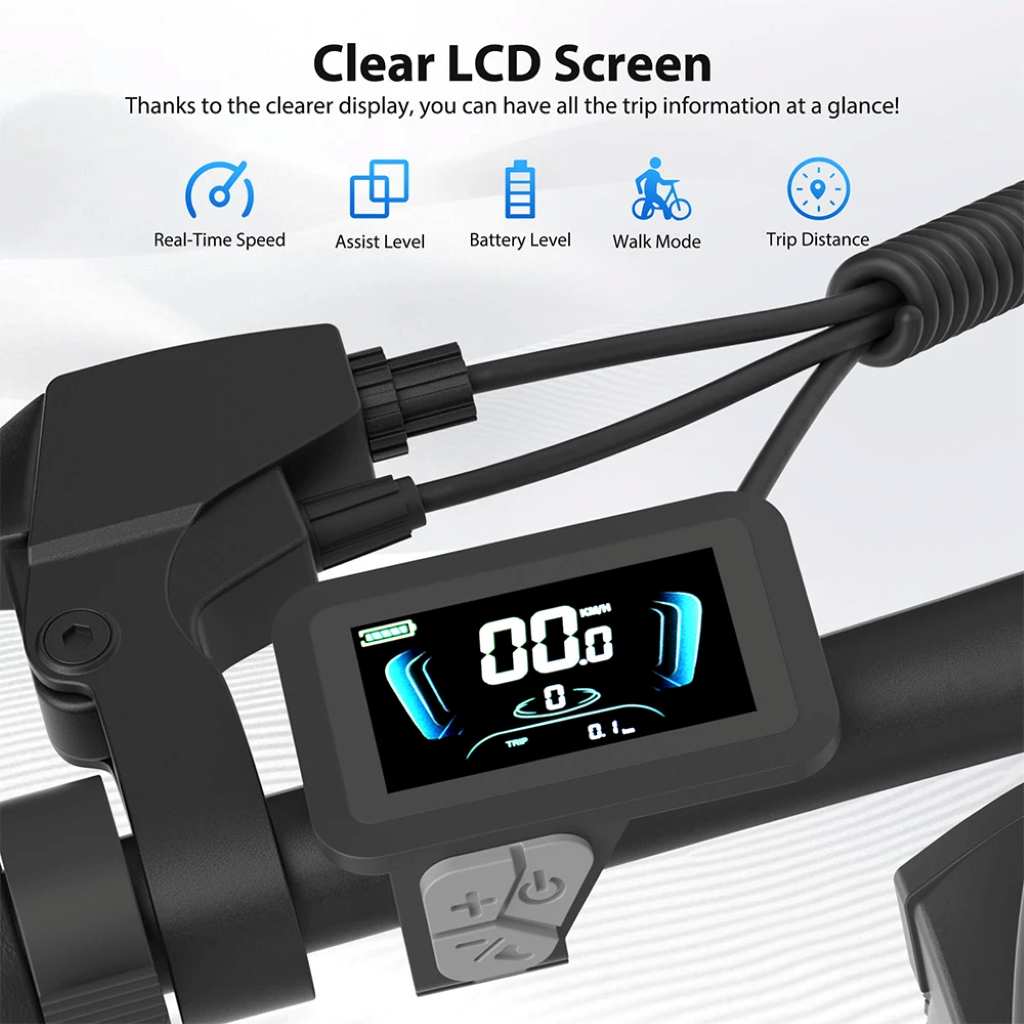 • Pantalla LCD de 2.6 pulgadas, con información sobre velocidad, nivel de batería y modo de asistencia.