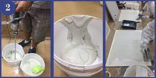 1. Aplicación del microcemento: Prepara la mezcla de microcemento siguiendo las proporciones recomendadas. Aplica el microcemento con una llana de acero inoxidable, extendiéndolo de manera uniforme sobre la superficie.