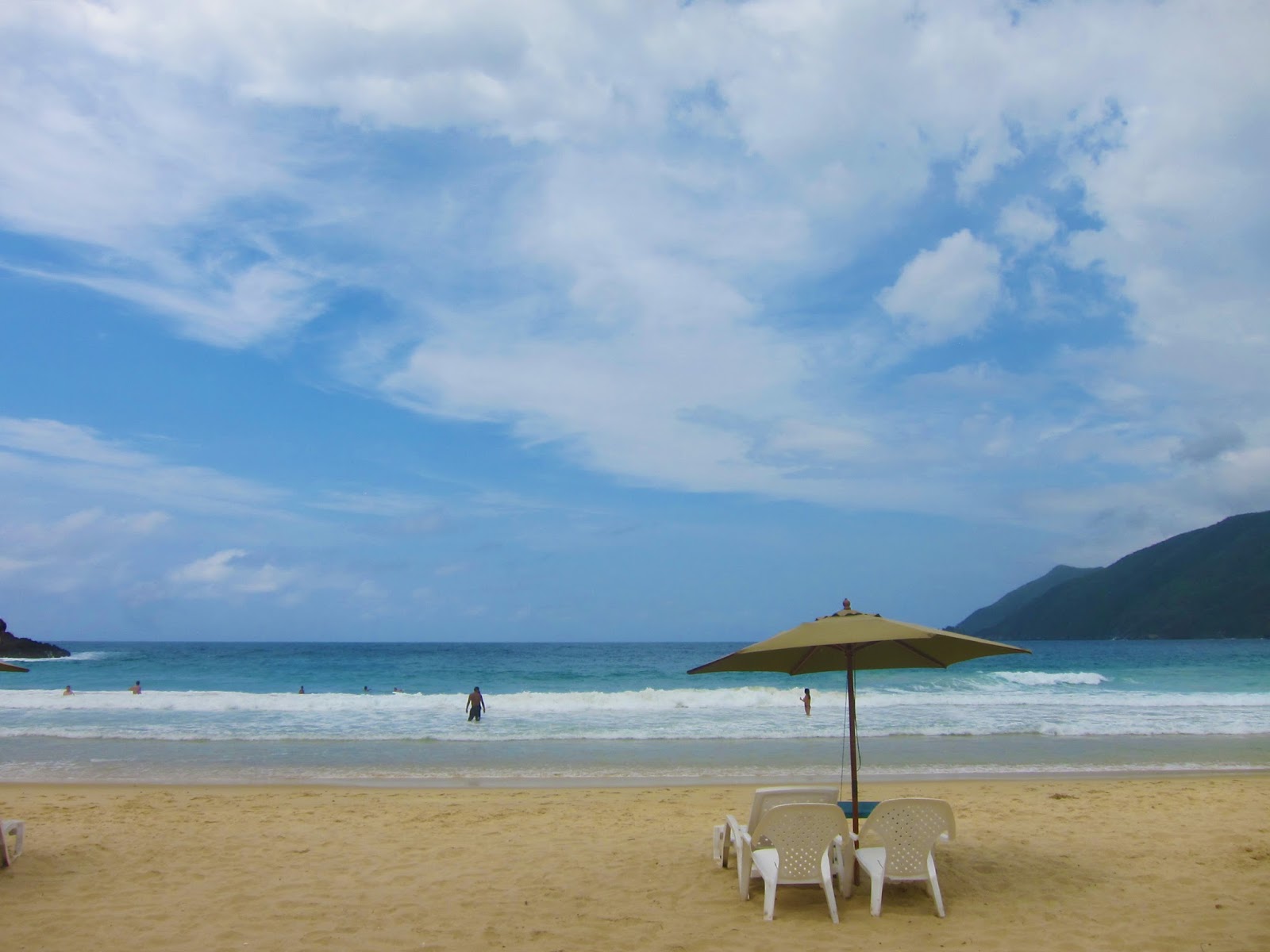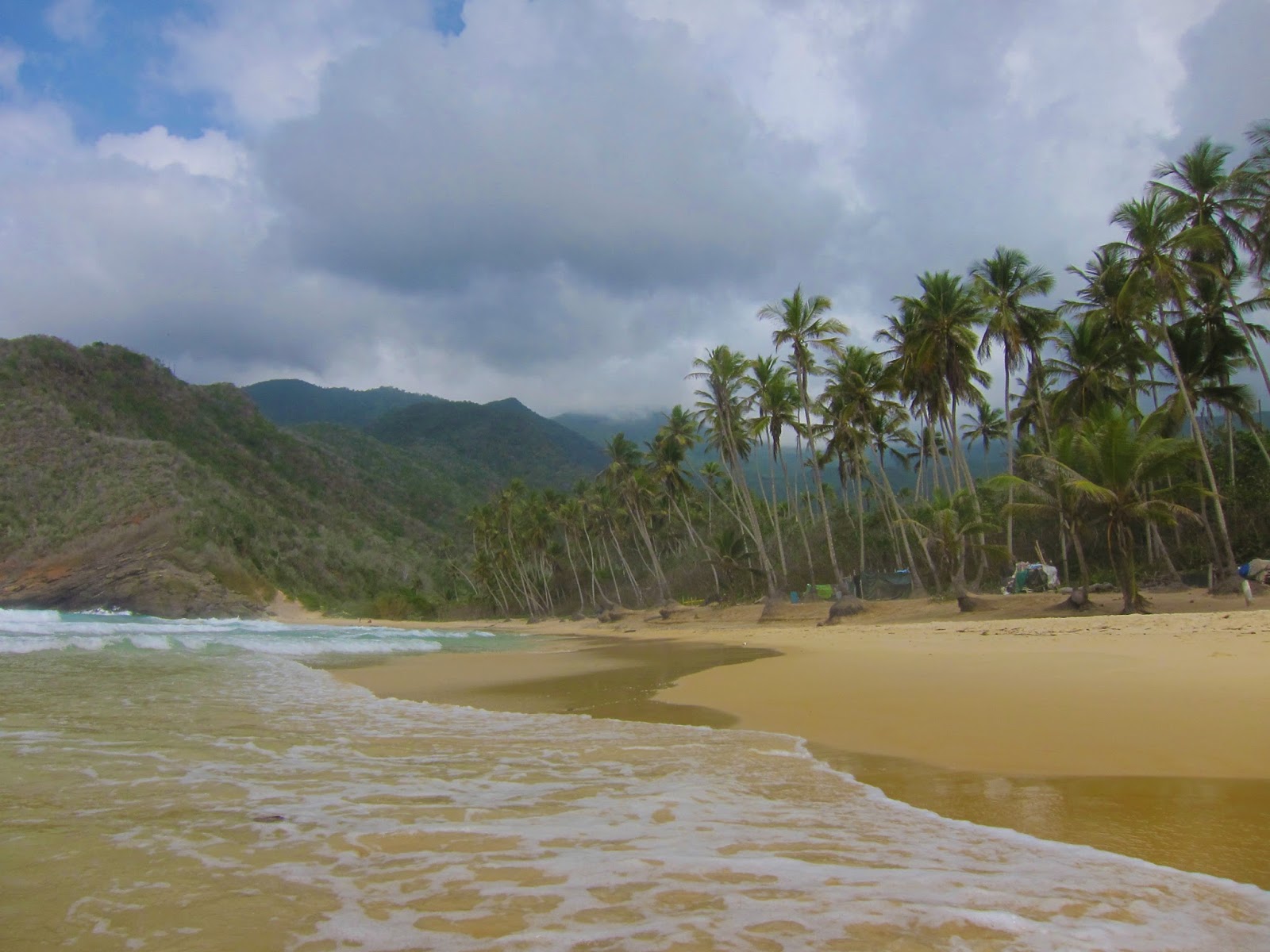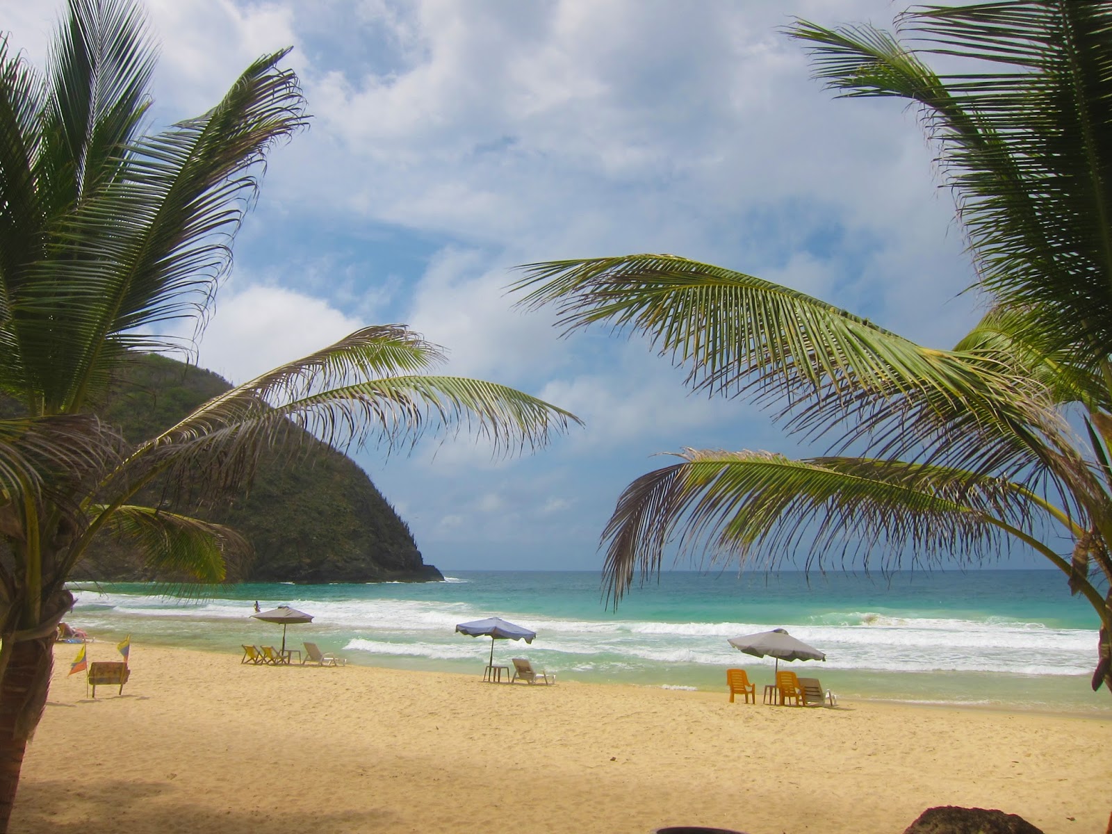 Es la postal perfecta de la costa venezolana, una playa enorme con arena fina, aguas intensamente azules y de temperatura cálida. Muchos cocoteros y enormes montañas de fondo.