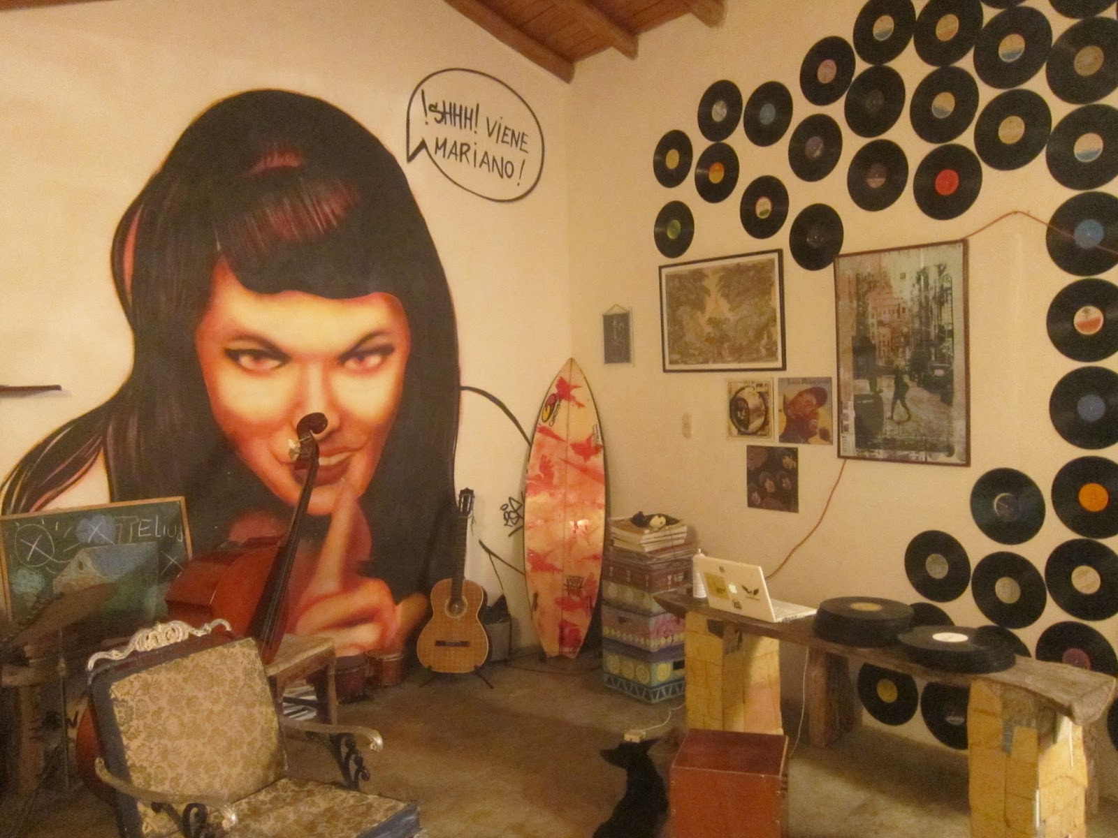 Celer Linares, su creador, se vino de Mérida hace algunos meses para dar clases de música, aprovechó que disponía de un buen espacio con terraza y ahora ofrece tragos, comida y música en vivo los fines de semana. Ha decorado el lugar con materiales reciclados, todo es sencillo pero muy original.