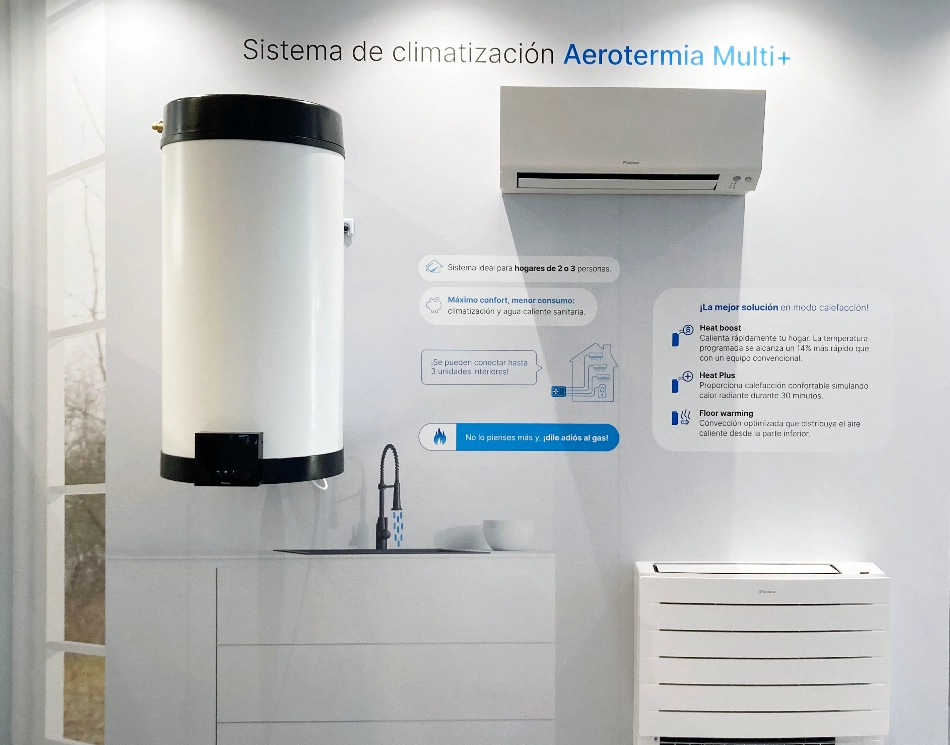 - · A pesar de que hay equipos de Aerotermia Split que son muy compactos, si quieres una instalación completa que caliente también el agua -lo ideal por lo que he podido ver- necesitas un espacio extra para integrarlo en los muebles de la cocina, y es importante tenerlo en cuenta en pisos muy pequeños.
