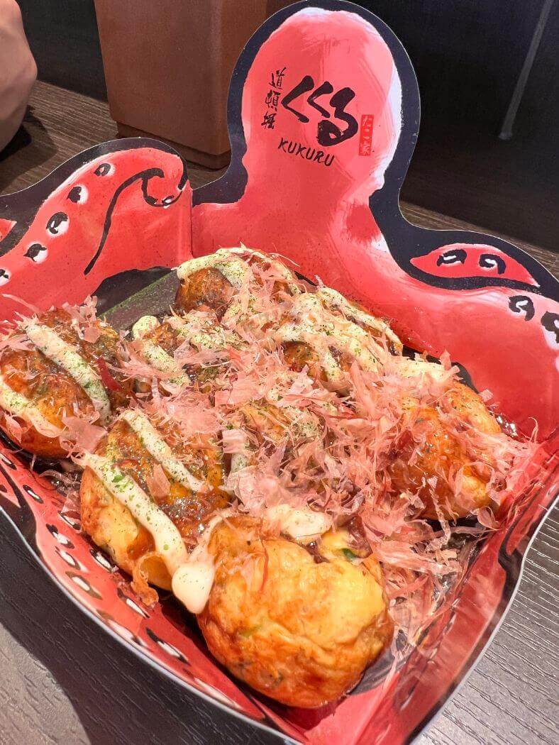 Cuando muerdes una takoyaki caliente y crujiente, te encontrarás con un relleno tierno y sabroso que realmente representa el sabor de Osaka. Cuando lo pidas, vas a ver que parece que se mueve, es muy curioso.