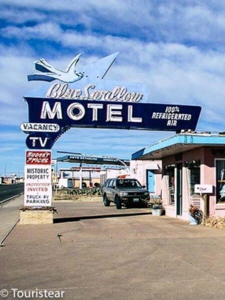El Blue Swallow Motel abrió sus puertas en 1939 y, de allí en más, fue un punto de referencia para los viajeros de la Ruta 66 en su ubicación 815 E Rte 66 Blvd, con su cartel de neón clásico y en zona céntrica, a 10 minutos del Museo de dinosaurios.