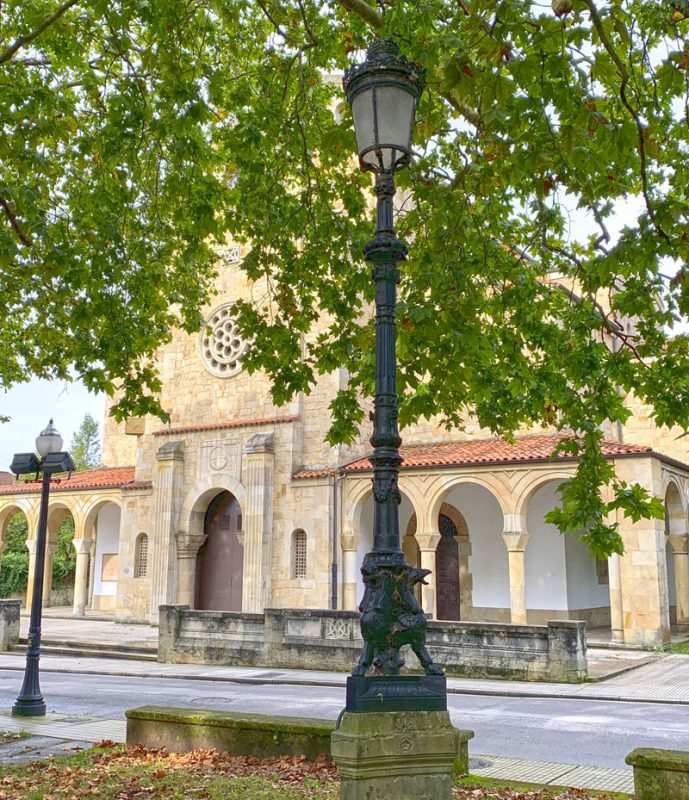 Empezamos la ruta por Somió en el campo de la iglesia, donde se esconde una curiosidad. Fíjate en las farolas que hay en el parque y que conviven con robles, falsos plátanos y acacias. Es el viejo alumbrado de gas que en su momento iluminó la calle Corrida, la más comercial de Gijón. Tres piezas vistosas y muy decoradas pues fueron diseñadas no sólo con el fin de iluminar la calle. También como ornamento para una ciudad cada vez más volcada en lo estético.