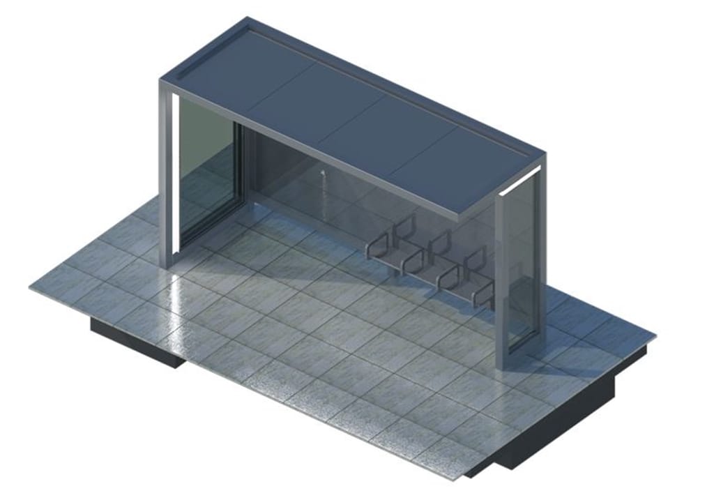El sistema de esta marquesina es autosuficiente, genera electricidad y agua fría, y además es capaz de adaptarse al entorno gracias a sensores que detectan la temperatura exterior, la presencia de personas y el clima.